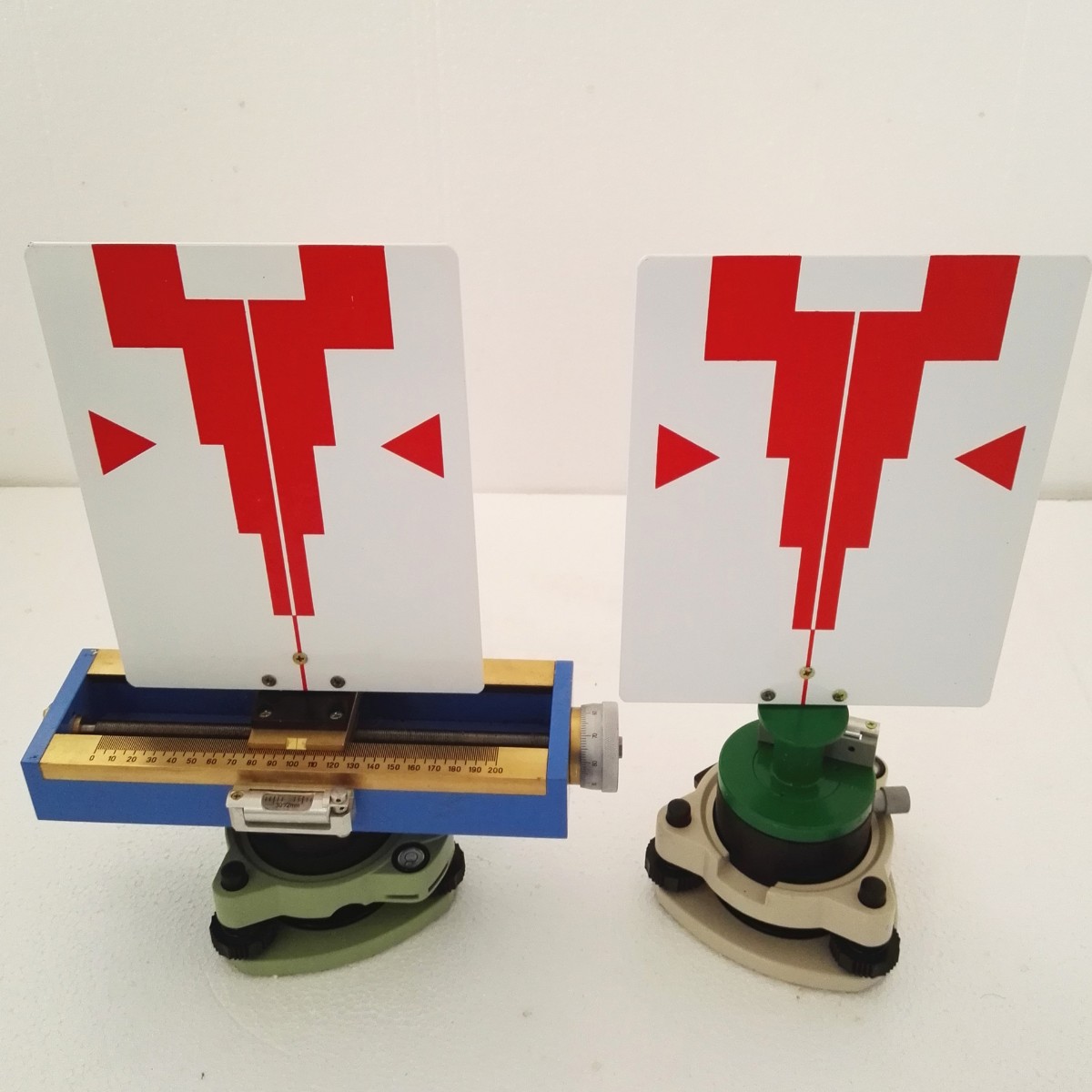 3、照准牌的校正,可在相距30米两经纬仪脚架上,分别安置经纬仪与活动觇标,整置平,用望远镜纵丝照准觇标中心线,观察觇标中心线是否竖直?如不竖直,可松开照准牌固定螺丝,将照准牌中心线调整竖直,并将中心线移动到首次测定的零位上,然后固定螺丝。
